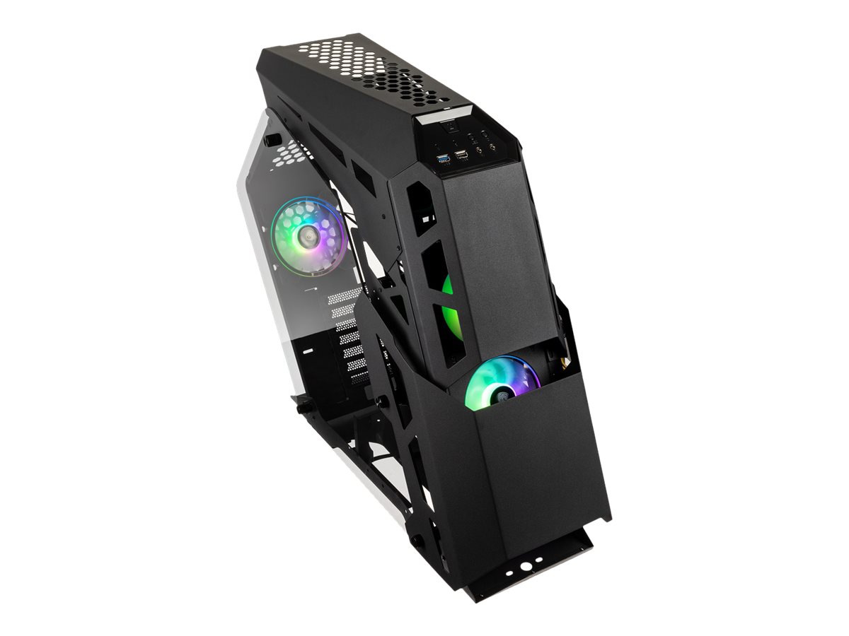 | Egenskaber, systemkabinet | Understøtter 240 mm radiator i toppen, understøtter 360 mm radiator i frontpanel, ventileret PSU-slør, 2 hævede hærdet glas-sidepaneler, metalfrontpanel |