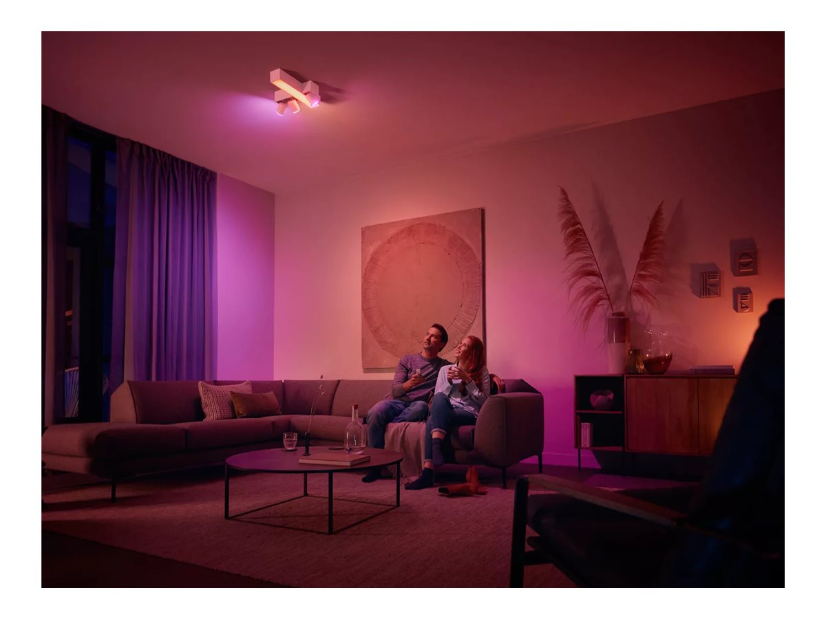 Skift mellem de fire forudindstillede belysningsløsninger: Read, Relax, Energize og Concentrate ved at trykke på Hue knappen. Forbind kontakten med en Hue Bridge for at tilpasse og tilføje dine foretrukne belysningsscener eller indstille det perfekte lys baseret på tidspunktet på dagen.