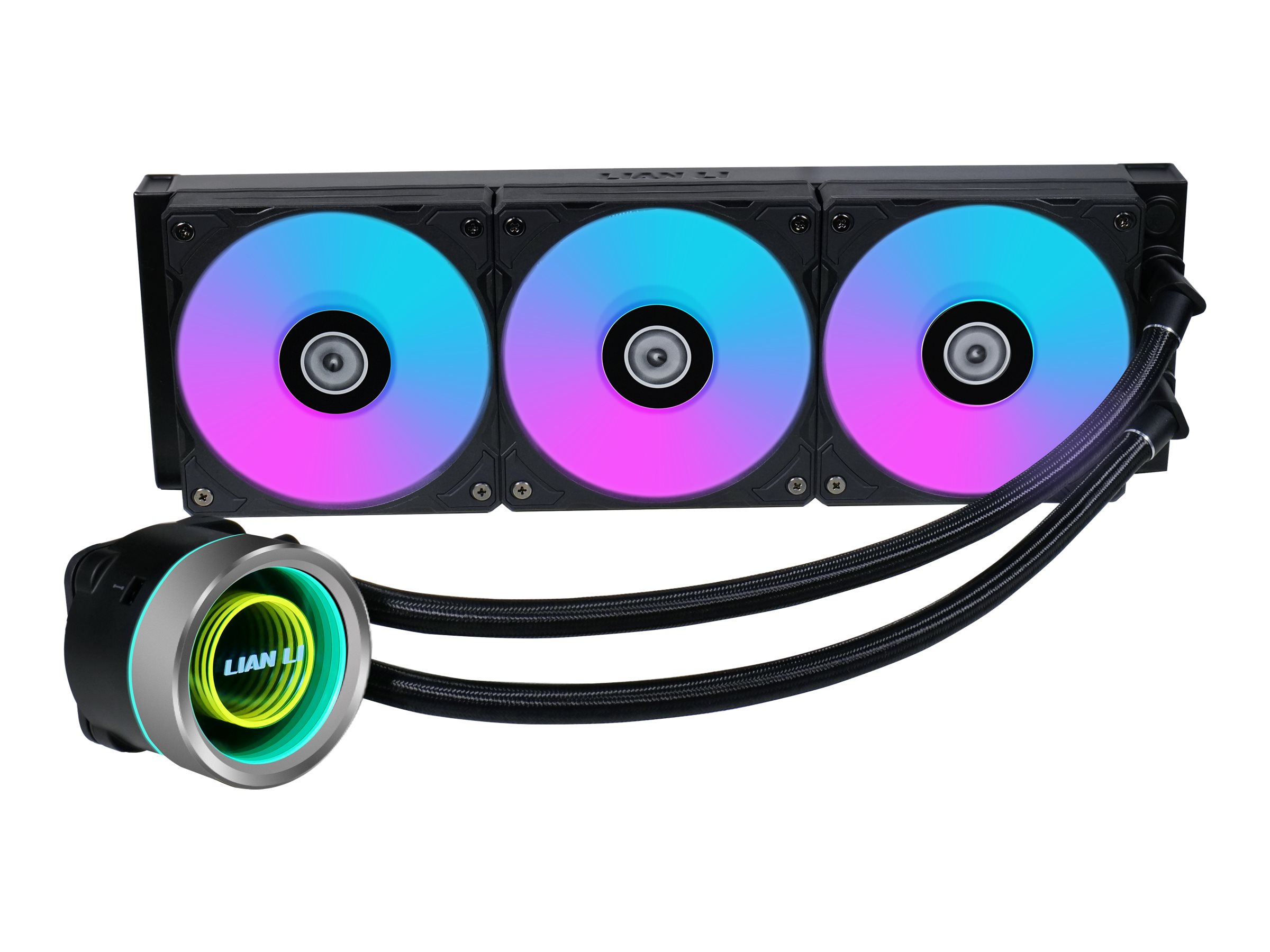 Galahad II Trinity er udstyret med ARGB-blæsere og et ARGB-pumpehoved og forbedrer din gaming-rig med levende lyseffekter, der kan tilpasses og er kompatible med L-Connect 3.