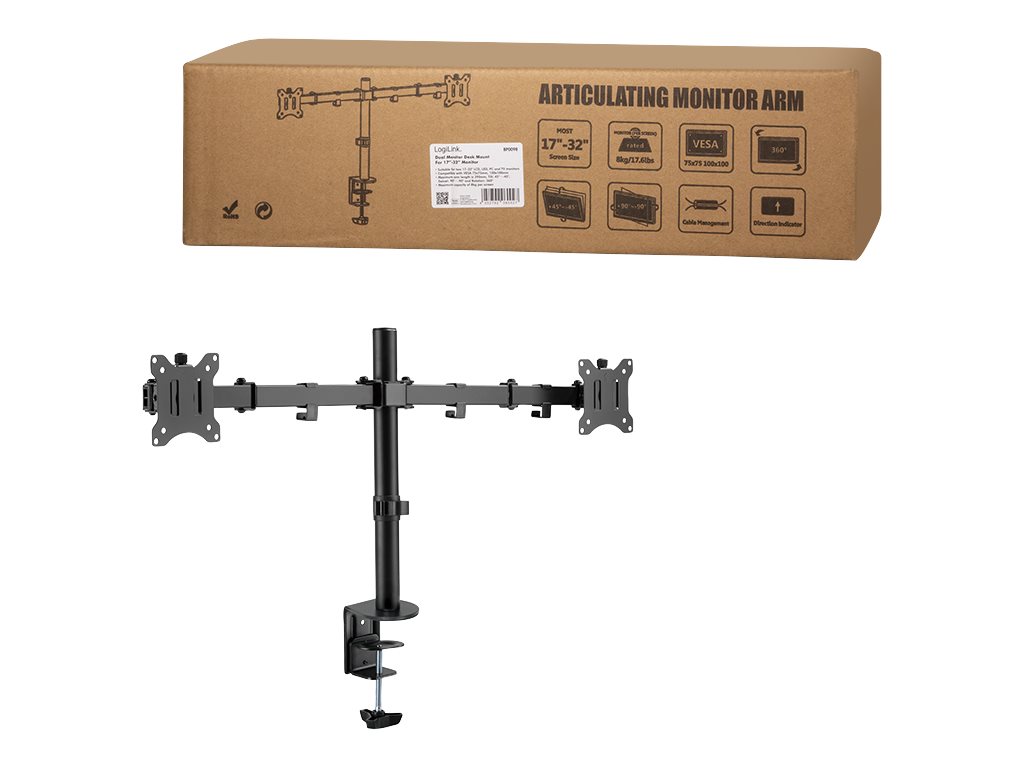 | Produktbeskrivelse | LogiLink monteringssæt - justerbar arm - for 2 LCD displays - sort |