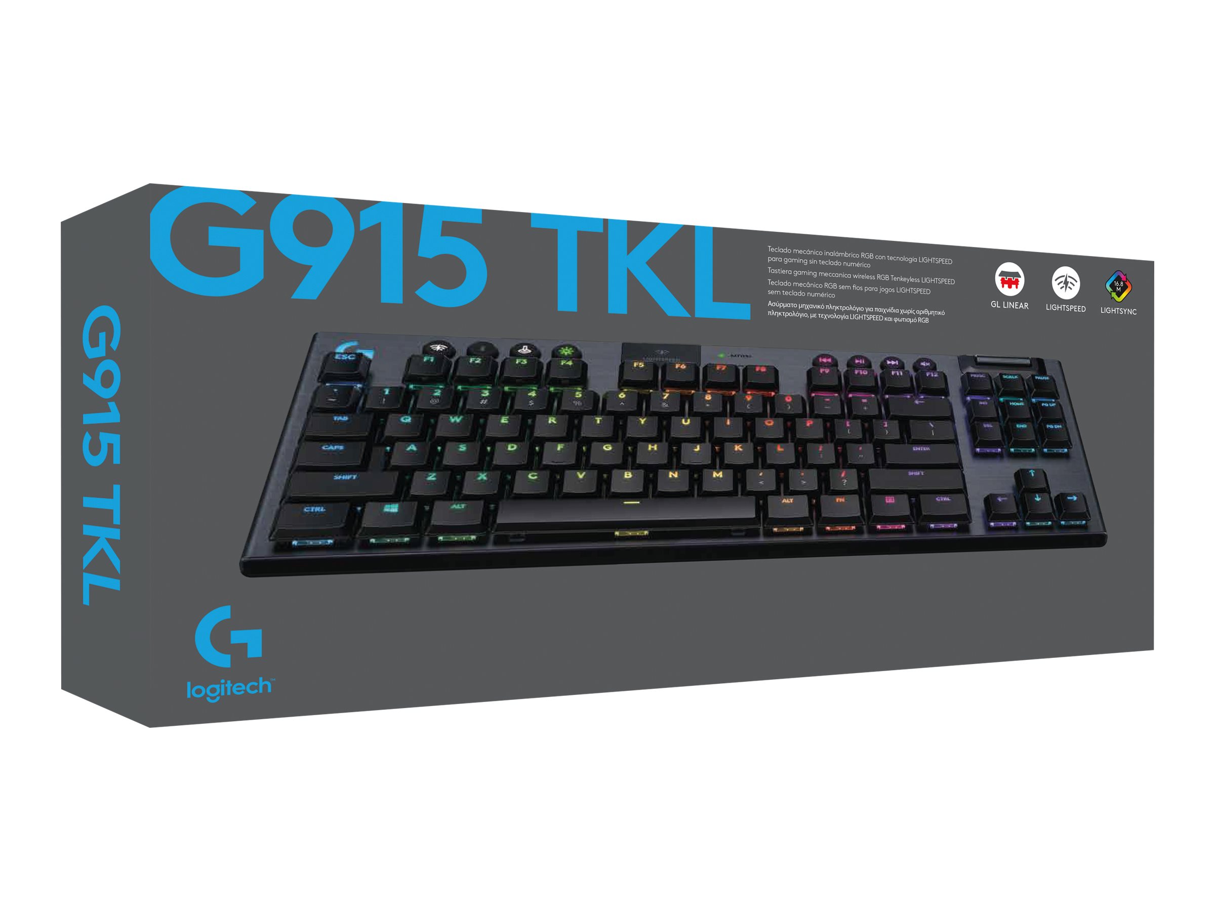 G915 TKL tilbyder intelligent LIGHTSYNC RGB-teknologi, der muliggør fuldt brugerdefinerbar belysning af hver tast ved hjælp af ca. 16,8 mio. farver. Du kan oprette dine egne animationer eller bruge de forudindstillede effekter for at få den mest intense RGB-oplevelse. Brug et tema, gør dit gameplay bedre og udvid din gamingopsætning via dit tastatur. De avancerede funktioner kræver Logitech G HUB-gamingsoftware, som kan hentes på logitechg.com/GHUB