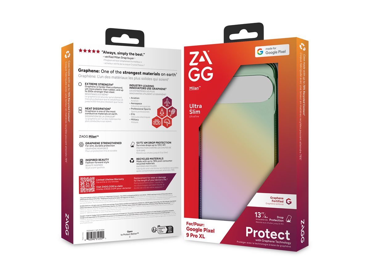 ZAGG Milan Snap beskyttelsescover er designet til at beskytte mobiltelefoner og kombinerer funktionalitet med stil. Dette lette bagcover er fremstillet af grafen, forbedrer grebet og understøtter trådløs opladning. Det slanke design sikrer, at coveret passer til din enhed uden at gøre den klodset, hvilket gør det velegnet til daglig brug. ZAGG Milan Snap overholder MIL-STD 810G 516-standarderne og tilbyder pålidelig beskyttelse mod fald fra op til 4 m. Dette cover er fremstillet af 78 % genanvendte materialer og bidrager til bæredygtighed uden at gå på kompromis med ydeevnen.