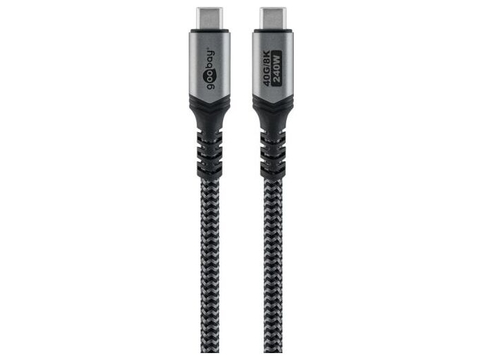 Goobay 74213- USB-C kabel - 1.8 m - USB C til USB C  - USB 4.0 40 Gbit/s - 240 Watt - Tekstilkabel - Grå