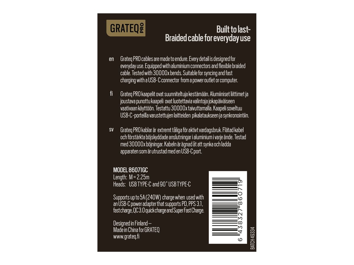 | Produktbeskrivelse | GRATEQ PRO - USB Type-C kabel - USB-C til USB-C - 2.25 m |
