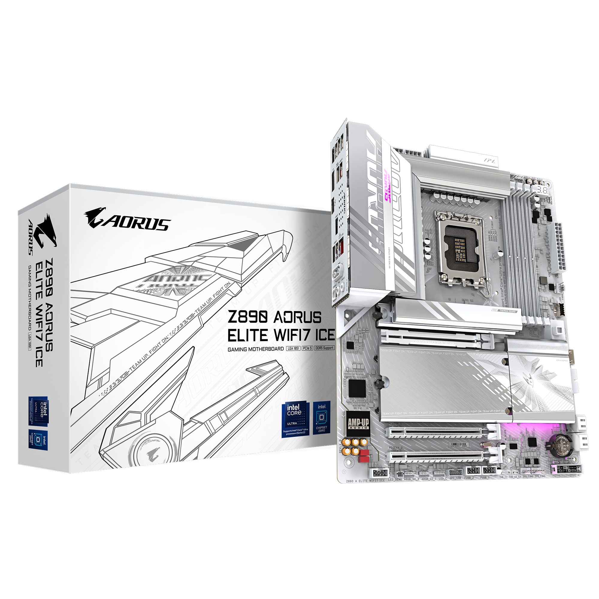 AORUS Z890 ELITE WIFI7 ICE - Bundkort - ATX - LGA1851 sokkel - Z890 Chipset - USB 3.2 Gen 1, USB 3.2 Gen 2, USB4, USB-C 3.2 Gen 2x2 - 2.5 Gigabit LAN, Wi-Fi 7, Bluetooth - onboard grafik (CPU påkrævet) - HD Audio (8-kanaler)
