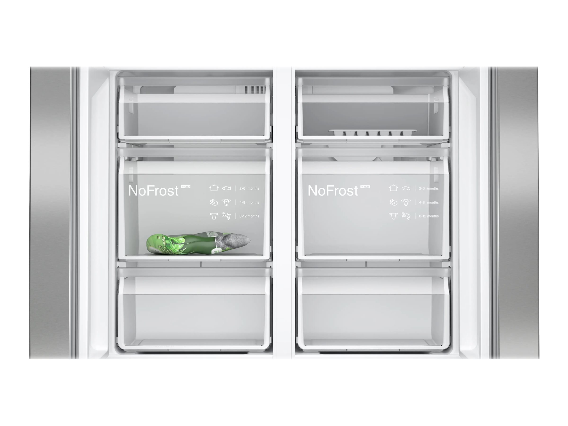 | Fryser hylder / skuffe detaljer | 4 x skuffe - gennemsigtig | 2 x skuffe - BigBox |