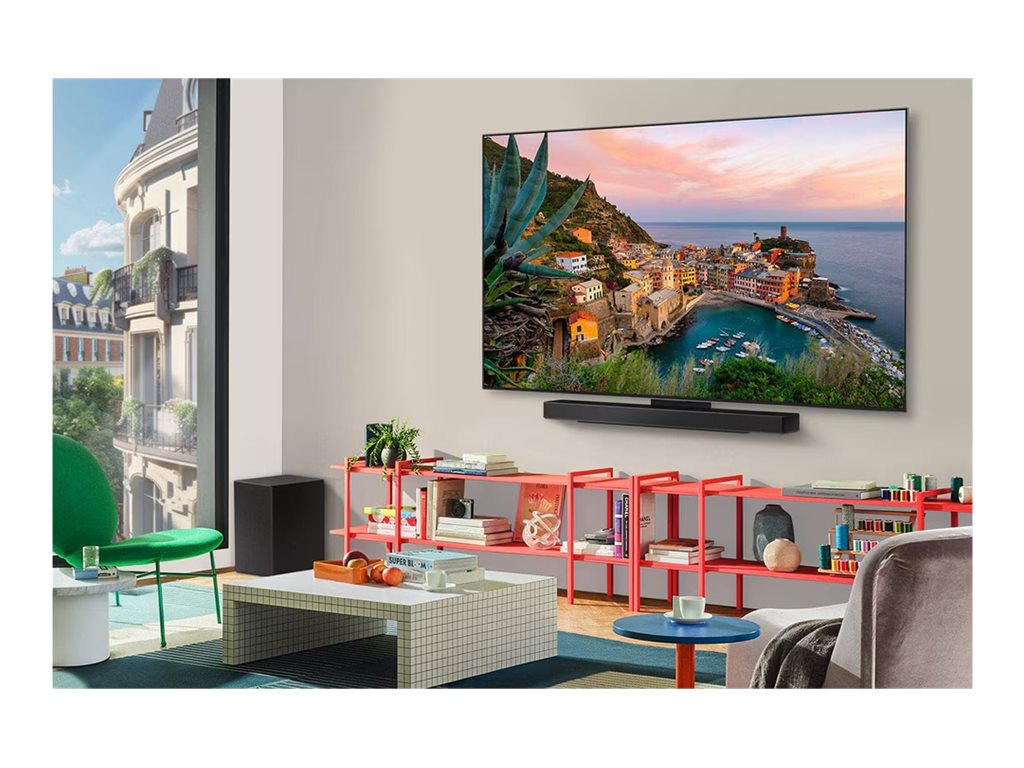 2.2-kanals lydsystemet med 40 watt udgangseffekt og funktioner som AI Acoustic Tuning og Clear Voice Pro-teknologi leverer en fyldig, klar lyd, der beriger seeroplevelsen.
