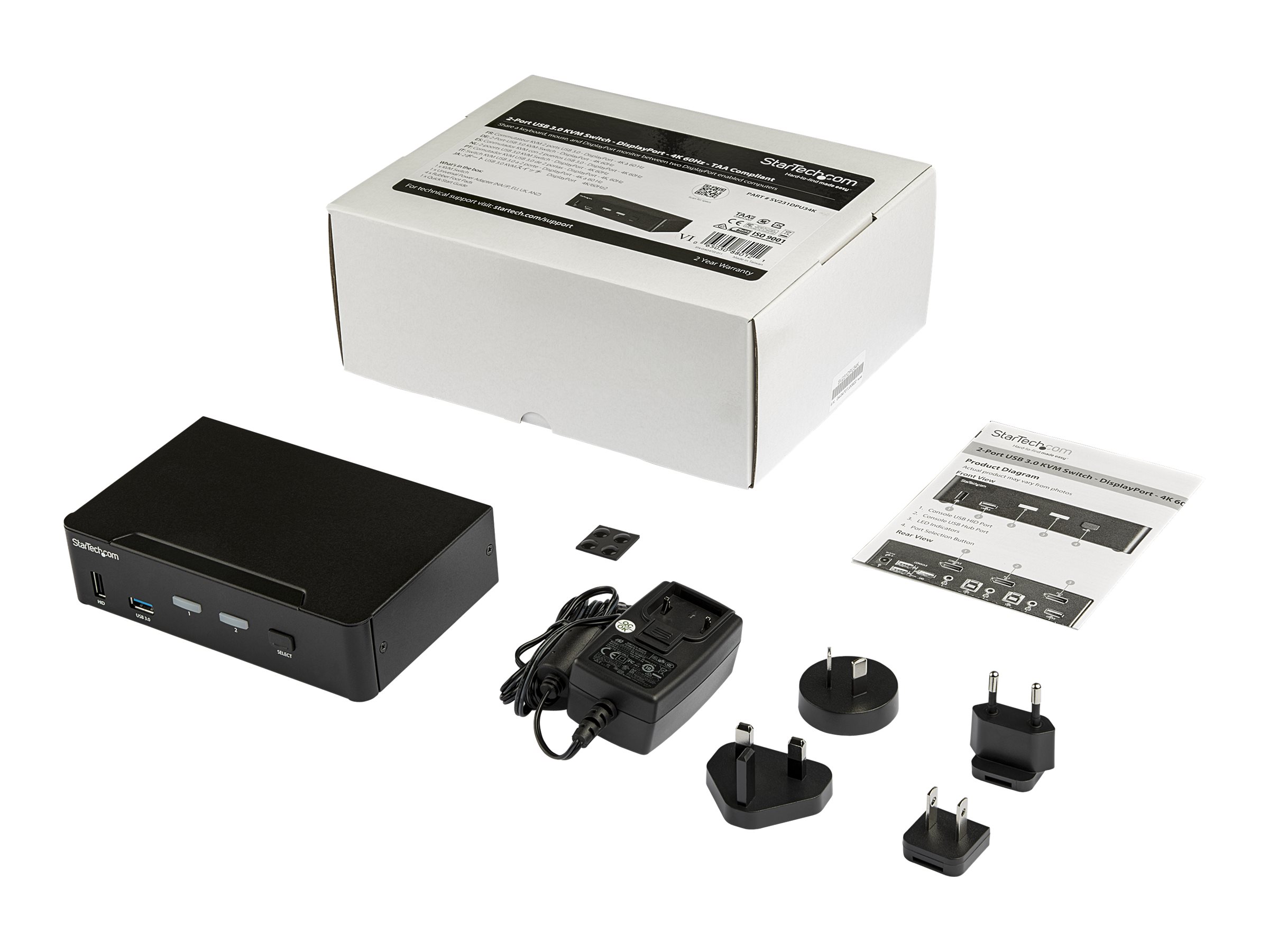 | Produktbeskrivelse | Startech 2 Port DisplayPort KVM Switch, 4K 60Hz, Single Display, Dual Port UHD DP 1.2 USB KVM Switch with Integrated USB 3.0 Hub and Audio, Dell, HP, Apple, Lenovo, TAA Compliant - Keyboard/Video/Mouse Switch (SV231DPU34K) - KVM / audio / USB switch - 2 porte - TAA-kompatibel |