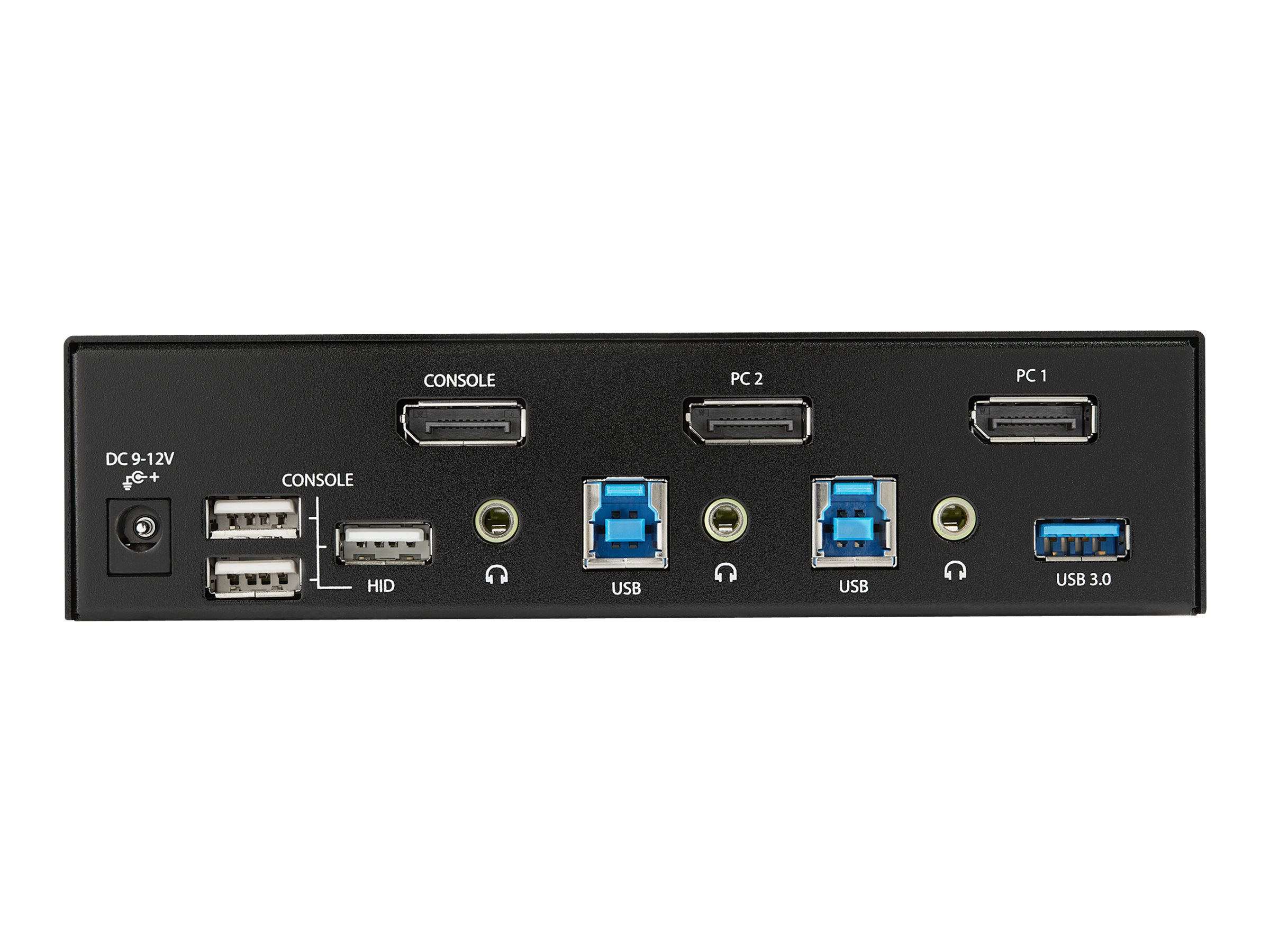 | Interface | 1 x DisplayPort output | 2 x DisplayPort input | 1 x audio-output mini-jack | 2 x audio-input mini-jack | 4 x tastatur (USB) / mus (USB) Type A | 2 x USB 3.0 Type B | 2 x USB 3.0 Type A |