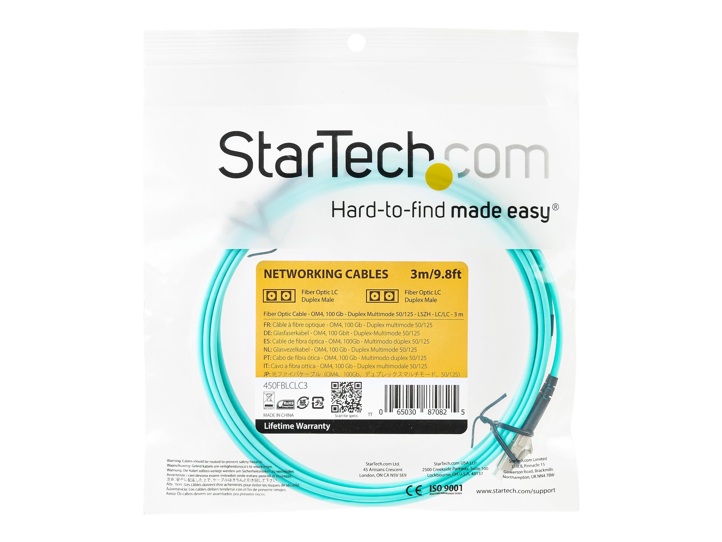 | Produktbeskrivelse | Startech Aqua OM4 Duplex Multimode Fiber - 3m/ 9 ft - 100 Gb - 50/125 - OM4 Fiber - LC to LC Fiber Patch Cable (450FBLCLC3) - netværkskabel - 3 m - 3 m. - akvamarin |