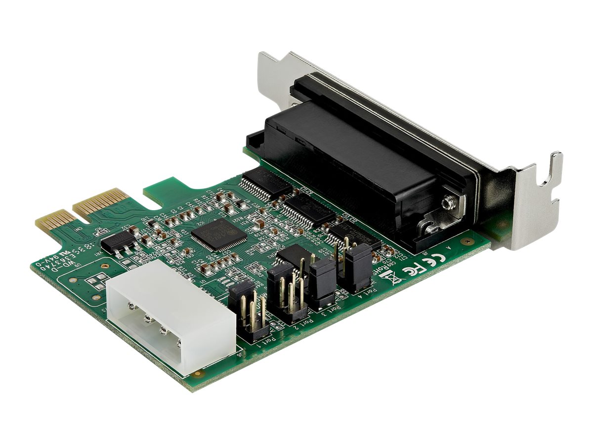 | Produktbeskrivelse | Startech 4-port PCI Express RS232 Serial Adapter Card, PCIe RS232 Serial Host Controller Card, PCIe to Serial DB9, 16950 UART, Low Profile Desktop Expansion Card, Windows, macOS, Linux - Full/Low-Profile (PEX4S953LP) - seriel adapter - PCI Express x1 - RS-232 x 4 |