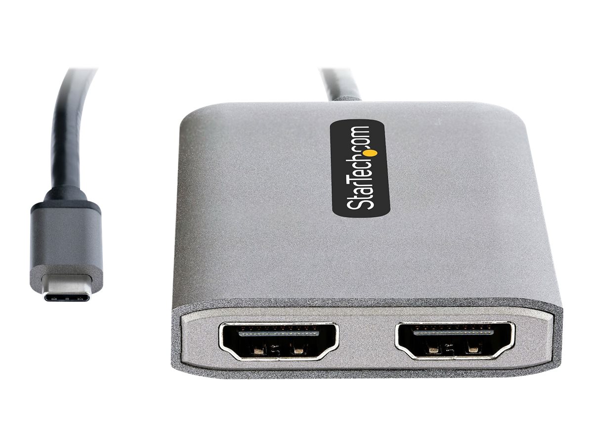 Startech USB-C to Dual HDMI MST HUB, Dual HDMI 4K 60Hz, USB Type C Multi Monitor Adapter for Laptop w/ 1ft (30cm) cable, DP 1.4 Multi-Stream Transport Hub, USB Type C to 2x HDMI Ports - USB-C to HDMI Splitter (MST14CD122HD) - Videoadapter - USB-C han til HDMI hun - grå