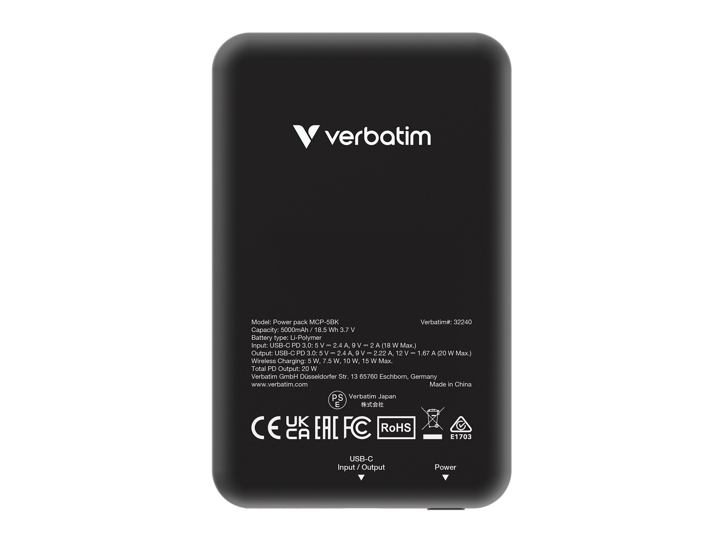 | Produktbeskrivelse | Verbatim Charge 'n' Go trådløs power bank - magnetisk montering - Li-pol - USB-C - 20 Watt |