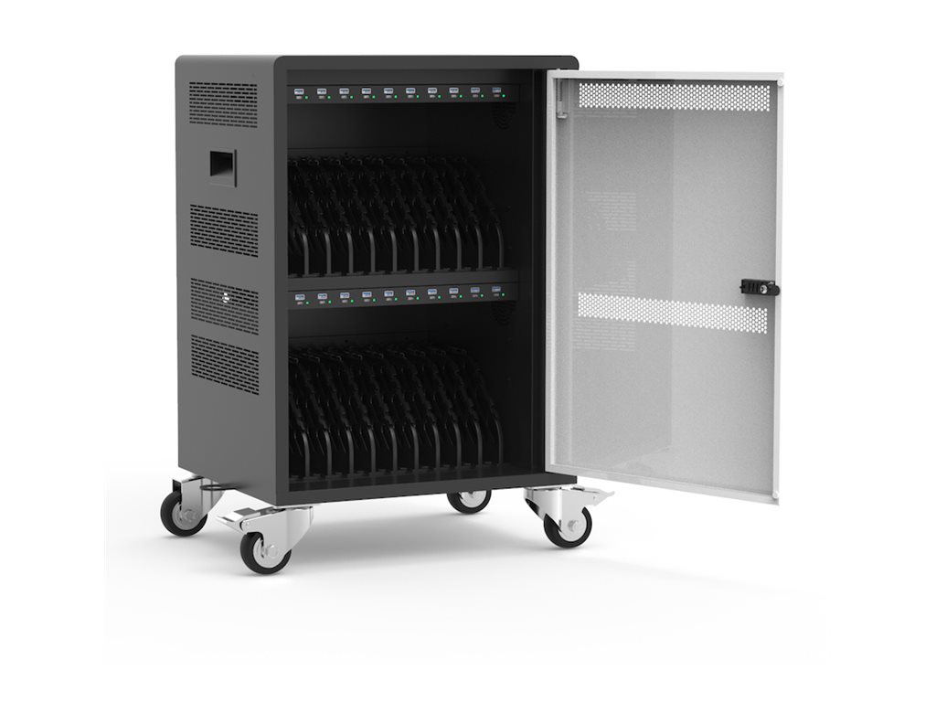 Vognen har plads til op til 20 enheder, hvilket gør den velegnet til skoler, kontorer og organisationer, der har brug for at oplade flere enheder samtidigt.