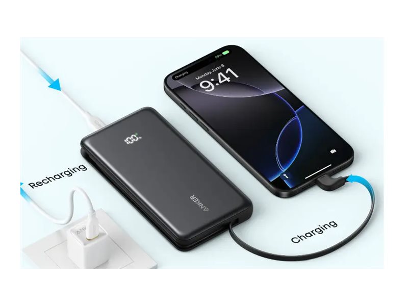| Produktbeskrivelse | Anker Zolo A110D powerbank - indbygget USB-C kabel, CCC-certificeret - 2 x USB-C, USB - 22.5 Watt |