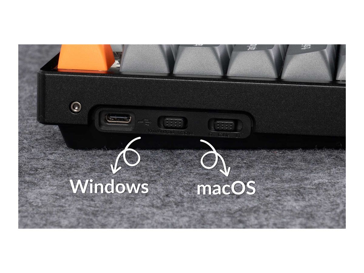 Oplev funktionalitet og komfort med Keychron K8 MAX-tastaturet. Dette mekaniske tastatur er designet til at være kompatibelt med Mac-enheder og har 87 taster med multimediefunktioner, der sikrer et effektivt workflow, uanset om du arbejder eller spiller. Med kabel-, trådløs og Bluetooth 5.1-forbindelse kan brugerne nyde fleksibilitet i, hvordan de forbinder deres enheder. Tastaturet er udstyret med RGB-baggrundsbelysning, der giver mulighed for tilpasning og synlighed under alle lysforhold. Det justerbare design og det aftagelige kabel forbedrer brugervenligheden og bekvemmeligheden i enhver opsætning.