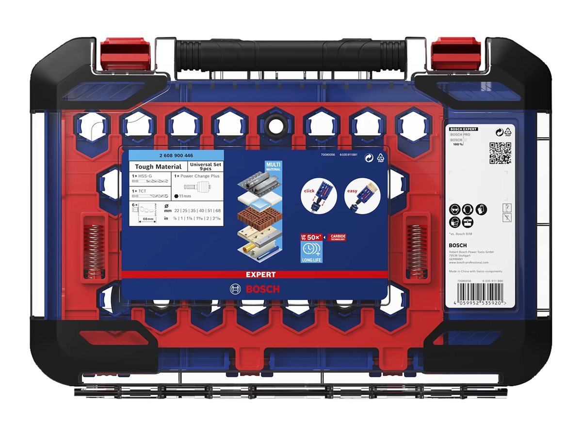 | Produktbeskrivelse | Bosch Expert Tough Material hulsavssæt - for plastik, mursten, blød flise, rustfrit stålark, træ med metal - 9 stykker |