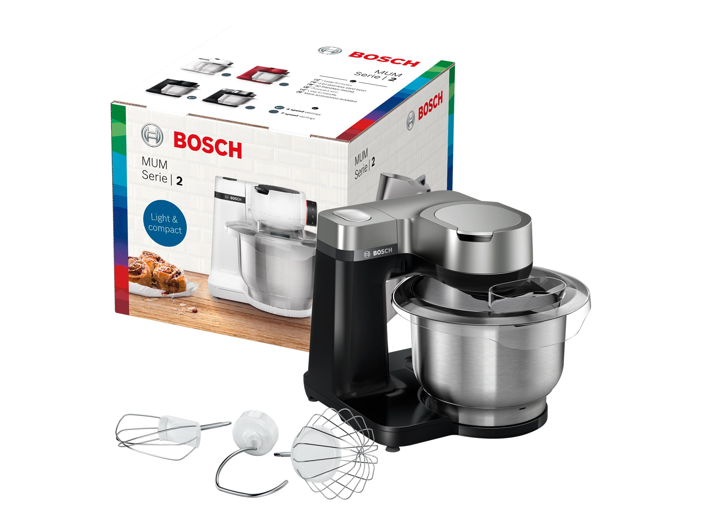 | Produktbeskrivelse | Bosch MUM Serie 2 MUMS2VM00 - køkkenmaskine - 900 W - sort/ sølv |