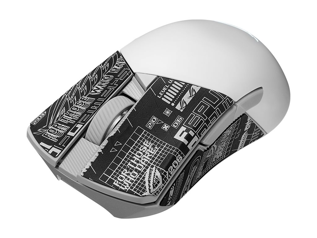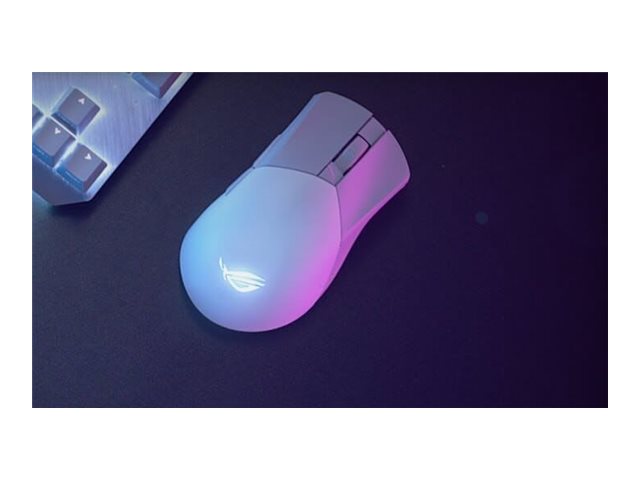 | Egenskaber | Anti-glid, ASUS Aura Sync RGB LED, tredobbelt forbindelse, håndfladegrip, 4 on-the-fly DPI-indstillinger, ROG Micro Switches, ROG Paracord-kabel, fingerspidsgrip, ROG AimPoint optisk sensor, 5 on board hukommelsesprofiler, udskiftelig Push-Fit kontaktsokkeldesign, ROG SpeedNova trådløs teknologi, 100 % PTFE-musefødder |