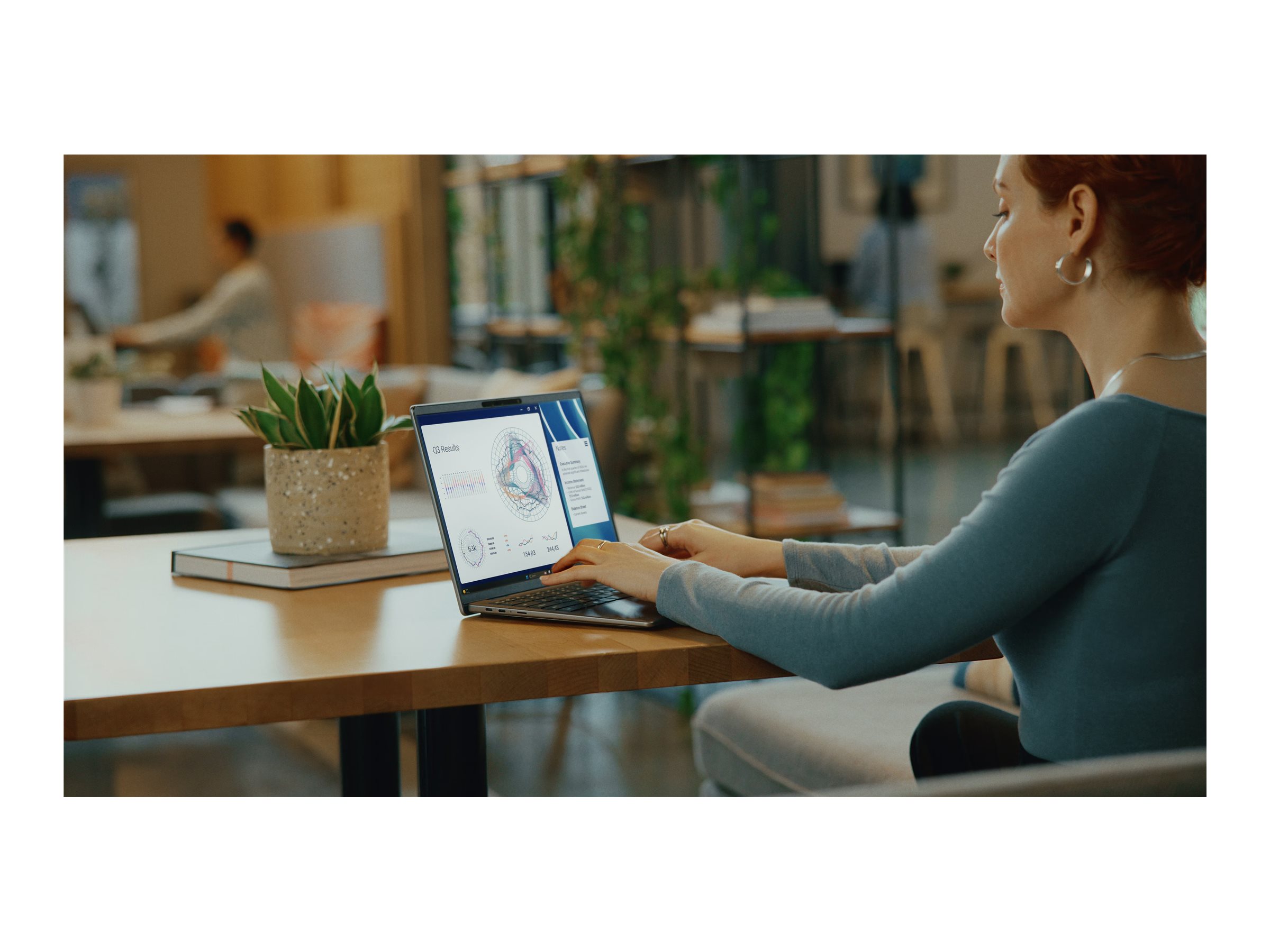LED-bredskærmen på Dell Latitude 7455 kombineret med et Full HD-webkamera med 30 billeder pr. sekund giver levende billeder og klare, jævne videoopkald, hvilket forbedrer din visnings- og kommunikationsoplevelse.