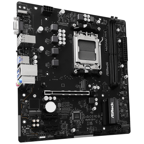 ASRock A620AM-HVS - Bundkort - micro ATX - Socket AM5 - AMD A620 Chipset - USB 3.2 Gen 1, USB-C 3.2 Gen 1 - Gigabit LAN - onboard grafik (CPU påkrævet) - HD Audio (8-kanaler)