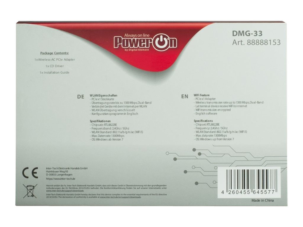 | Produktbeskrivelse | Inter-Tech DMG-33 - netværksadapter - PCI Express x1 |