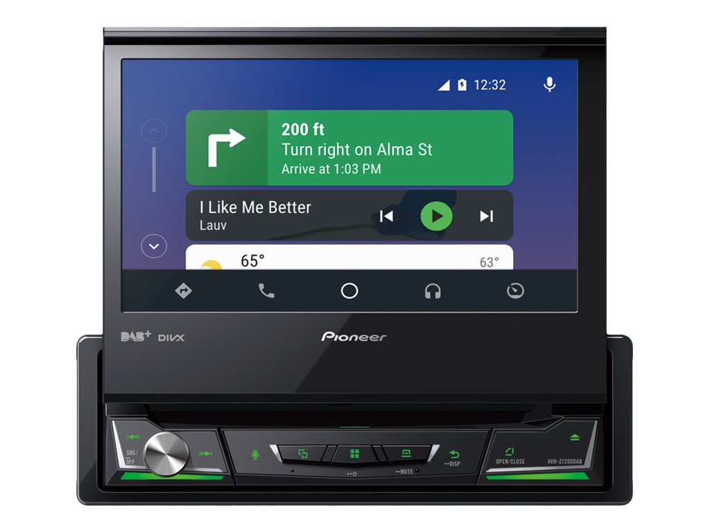 AVH-Z7200DAB går fra 1-DIN til 7" fuld bilunderholdning på få sekunder. Når den store touchscreen foldes ud, kan du med denne multimedieafspiller tilslutte en kompatibel iPhone eller Android-telefon med et enkelt USB-kabel, så du kan styre Apple CarPlay, Android Auto, WebLink og Waze (via Apple CarPlay eller Android Auto) fra instrumentbrættet på en bekvem og sikker måde. Den afspiller DAB/DAB+ digitalradio, audio-/videoindhold fra cd'er, dvd'er og USB-enheder.