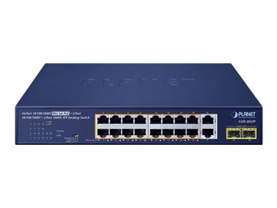 | Produktbeskrivelse | PLANET GSD-2022P - switch - 20 porte - ikke administreret |