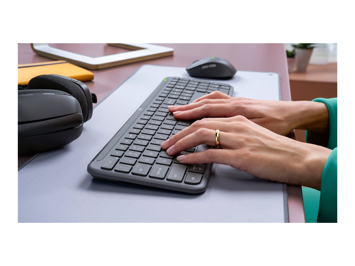 | Produktbeskrivelse | Logitech Signature Slim Combo MK950 for Business - sæt med mus og tastatur - QWERTY - US International - grafit Indgangsudstyr |