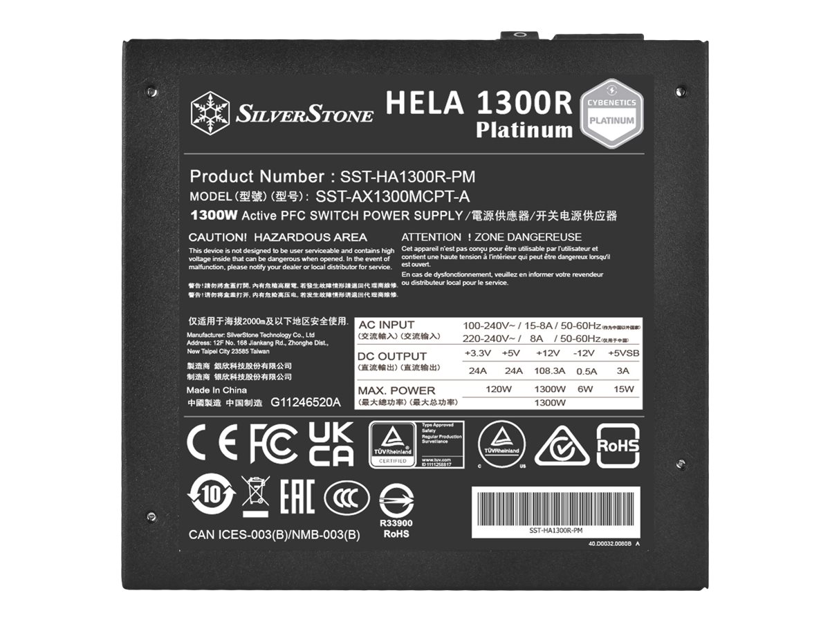 | Produktbeskrivelse | SilverStone HELA 1300R Platinum - strømforsyning - 1300 Watt |