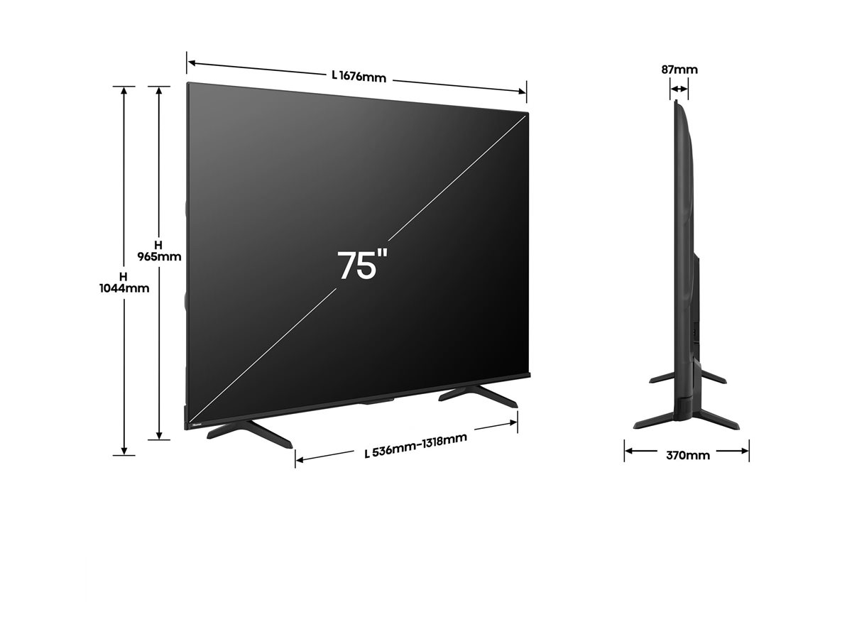 Med sin 4K UHD-opløsning og HDR-teknologi, der understøtter Dolby Vision og HDR10+, giver Hisense 75E77Q PRO en fantastisk seeroplevelse med rige farver og dybe kontraster i alt indhold.