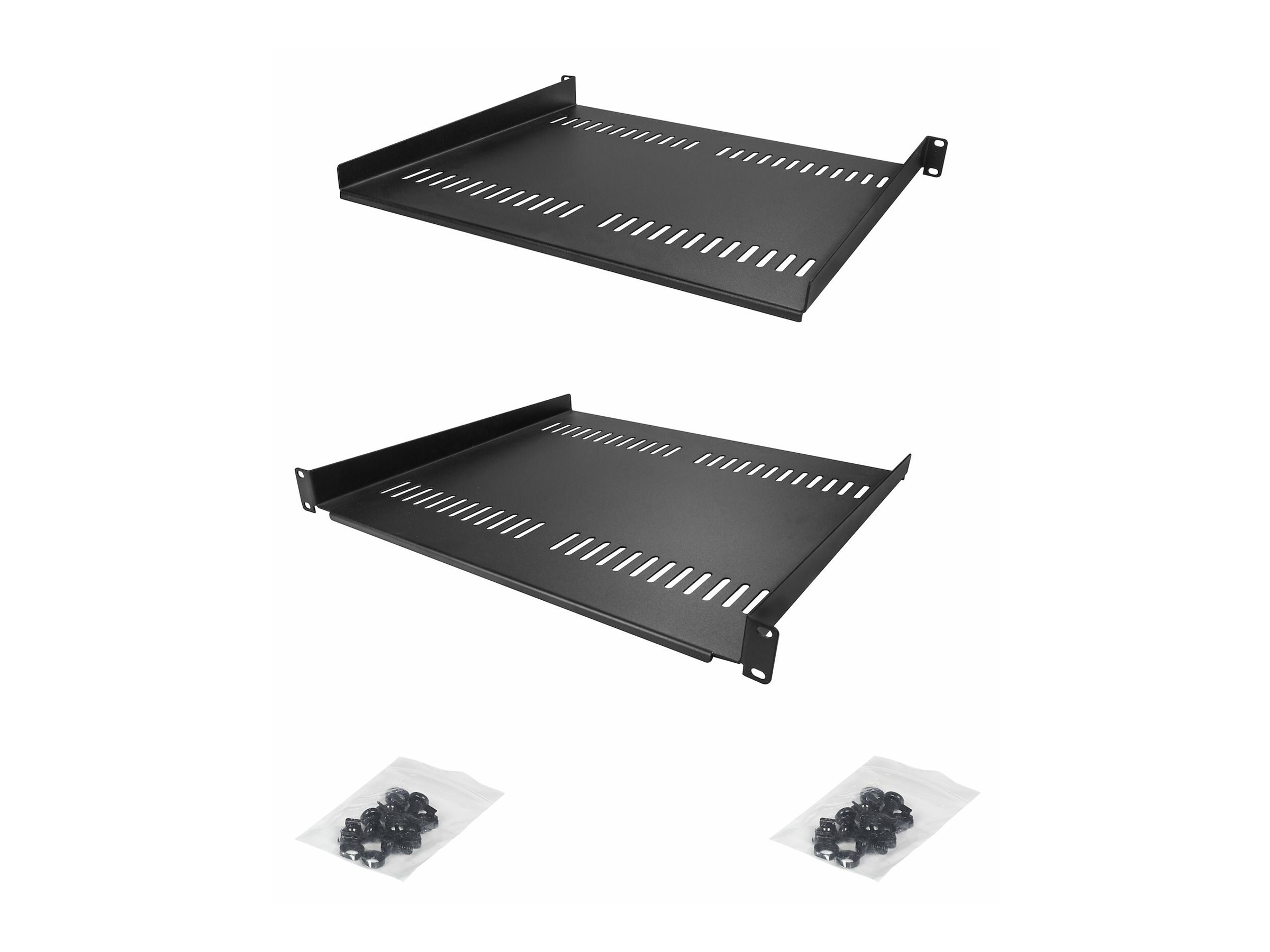 | Produktbeskrivelse | StarTech.com 2-Pack 1U Server Rack Shelf, Vented, 44lb Capacity, 16" Deep (CABSHELF116V2PK) - rackhylde - 1U |
