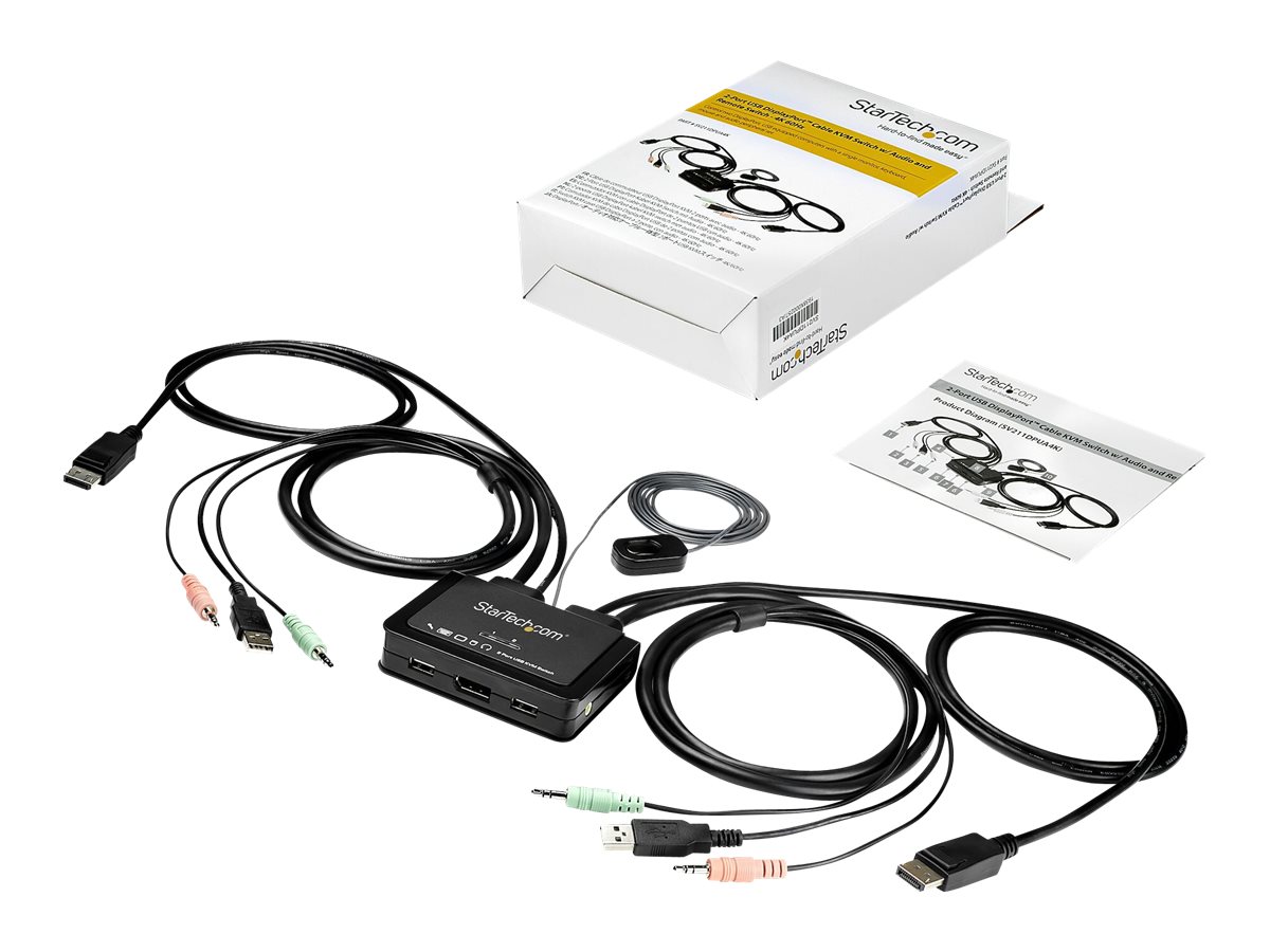 | Produktbeskrivelse | Startech 2 Port DisplayPort KVM Switch, 4K 60Hz, Compact Dual Port UHD DP 1.2 USB Desktop KVM Switch w/ Integrated 4ft Cables & Audio, Bus Powered & Remote Switching, MacBook ThinkPad - 4K KVM Switch w/ Audio (SV211DPUA4K) - KVM / audio-switch - 2 porte |