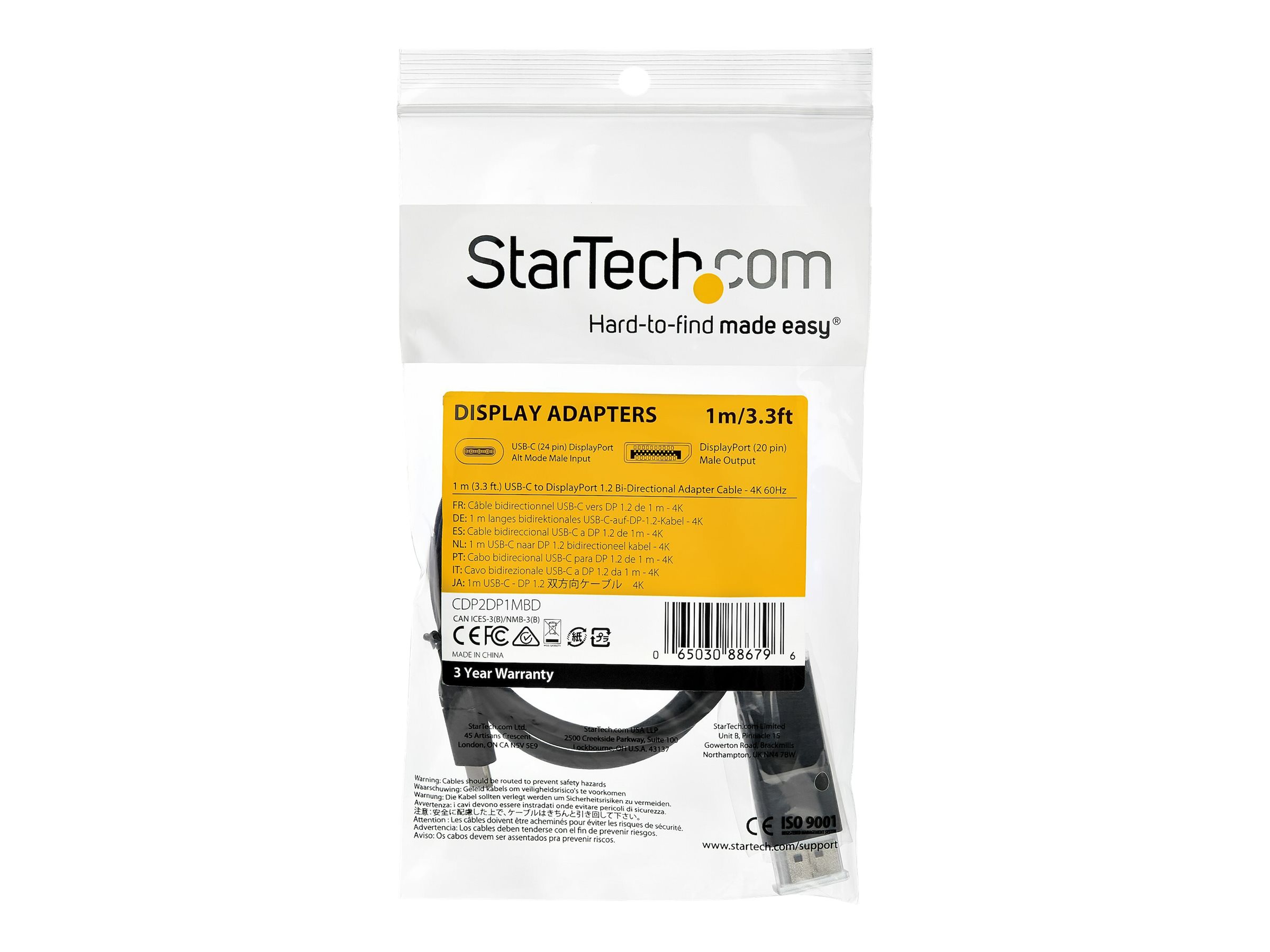 CDP2DP1MBD is backed by a StarTech.com 3-year warranty and free lifetime technical support.