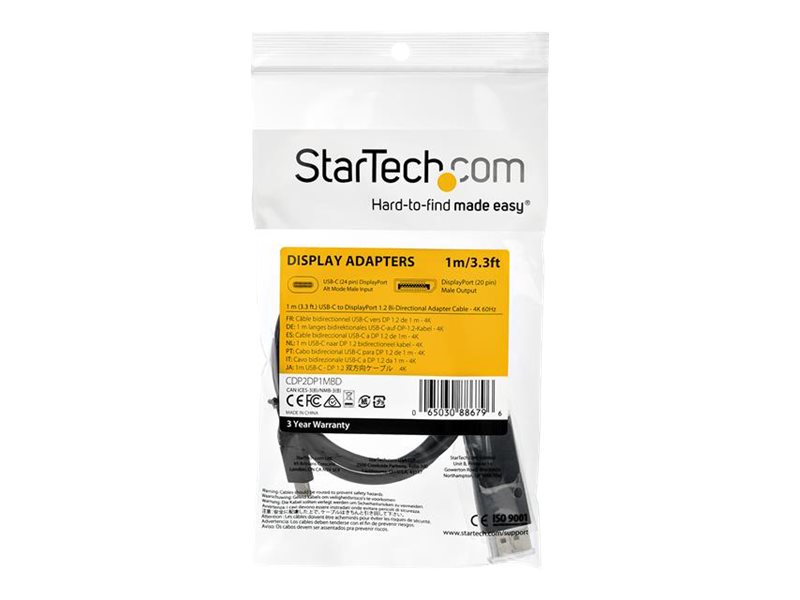 | Produktbeskrivelse | StarTech 3ft (1m) USB C to DisplayPort 1.2 Cable 4K 60Hz, Bidirectional DP to USB-C or USB-C to DP Reversible Video Adapter Cable, HBR2/HDR, USB Type C/Thunderbolt 3 Monitor Cable - 4K USB-C to DP Cable - DisplayPort kabel - USB-C til DisplayPort - 1 m |