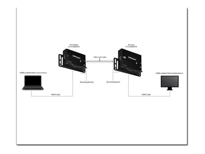 | Produktbeskrivelse | Startech 330 ft. (100 m) HDMI Over CAT5e / CAT6 Extender - HDMI over CAT5e - HDBaseT Extender - 4K30 - HDMI Video Extender (ST121HDBTPW) - video/audio ekspander |