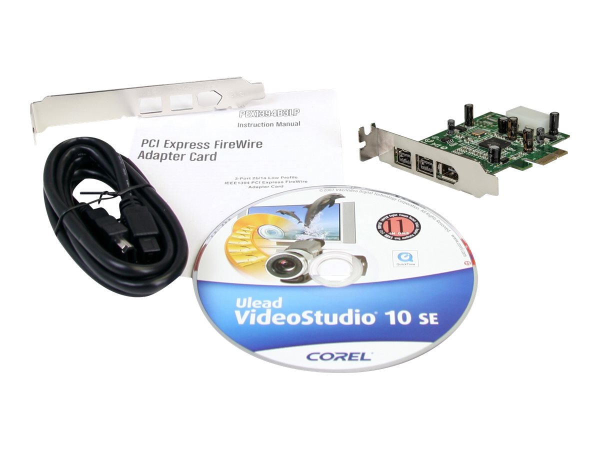 | Produktbeskrivelse | Startech 3 Port 2b 1a Low Profile 1394 PCI Express FireWire Card Adapter - FireWire adapter - PCI Express x1 - 2 porte |