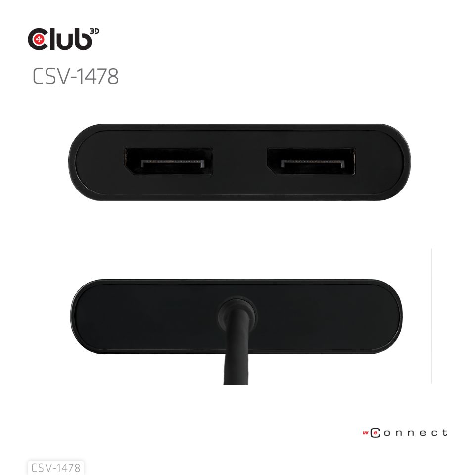 Club 3D SenseVision - Ekstern videoadapter - USB-C - 2 x DisplayPort - 3840 × 2160 ved 60 Hz - DisplayLink - sort