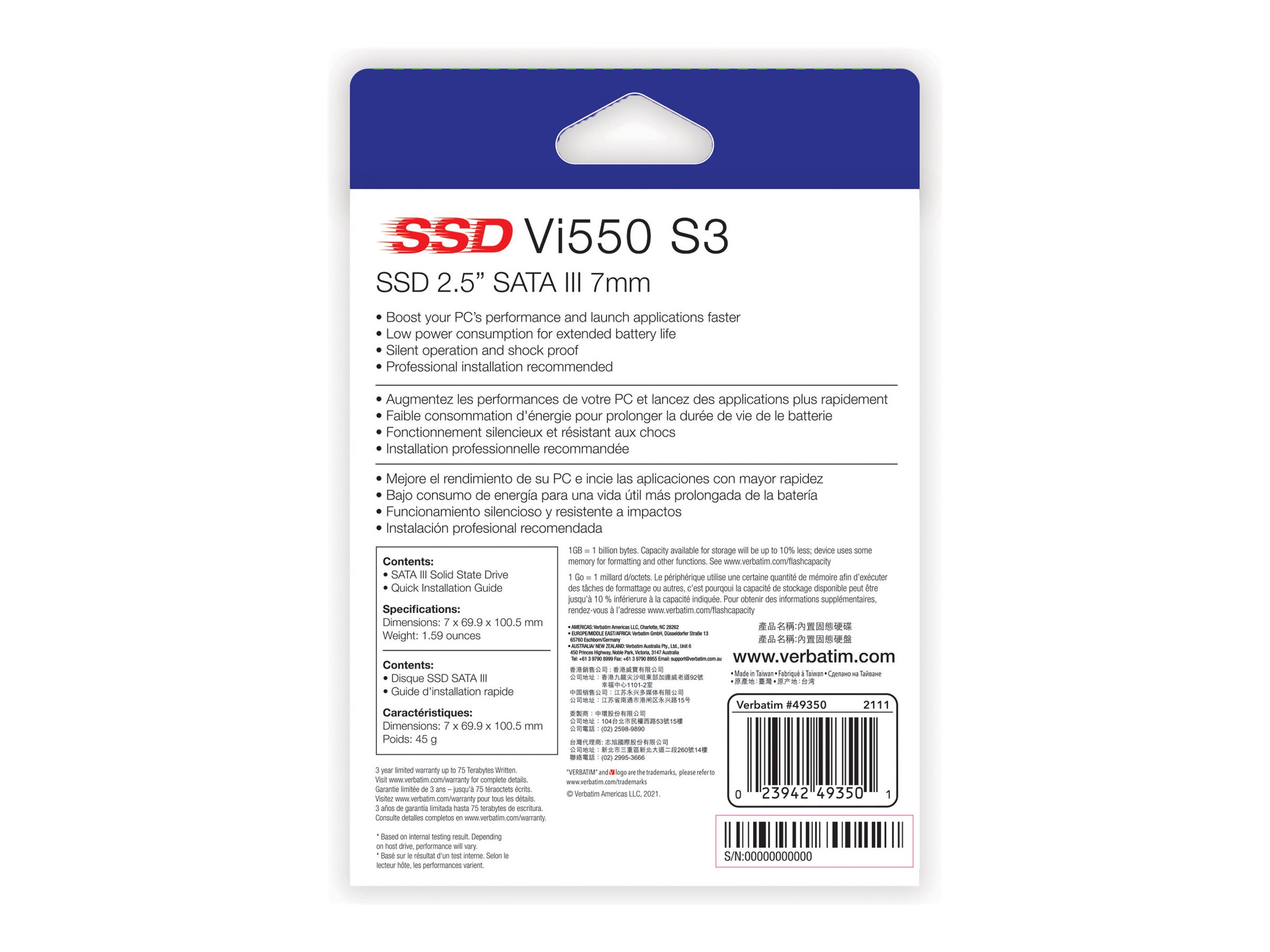 Verbatim 2.5 '' SATA III 7 mm solid state-drev kan genoplive systemets ydeevne. Ved hjælp af den nyeste 3D NAND-teknologi tilbyder de den perfekte måde at opgradere fra enten harddisk eller en ældre SSD. Vi550 har en overlegen controller til øget pålidelighed, større kapacitet og hurtigere læse-/skrivehastigheder.