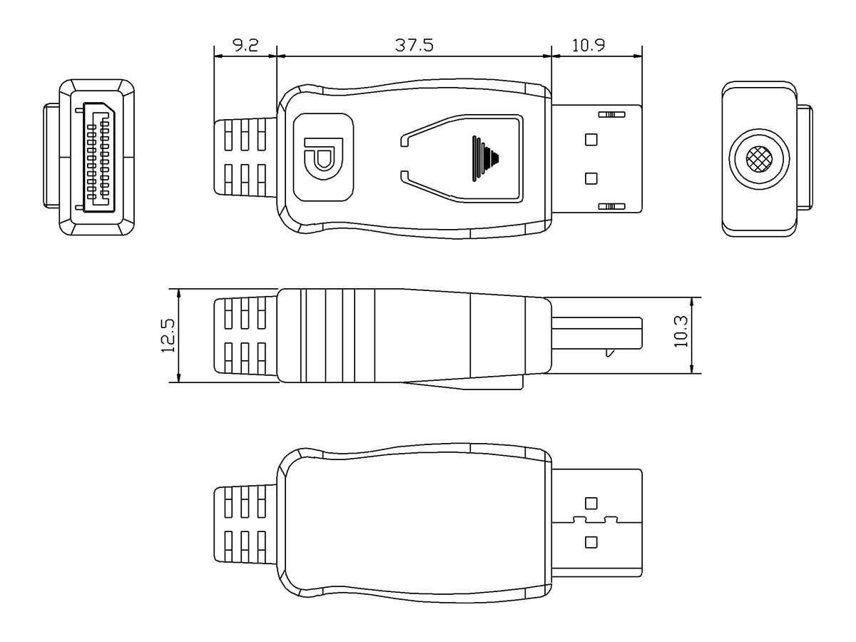 | Connector | 20 pin DisplayPort - male |