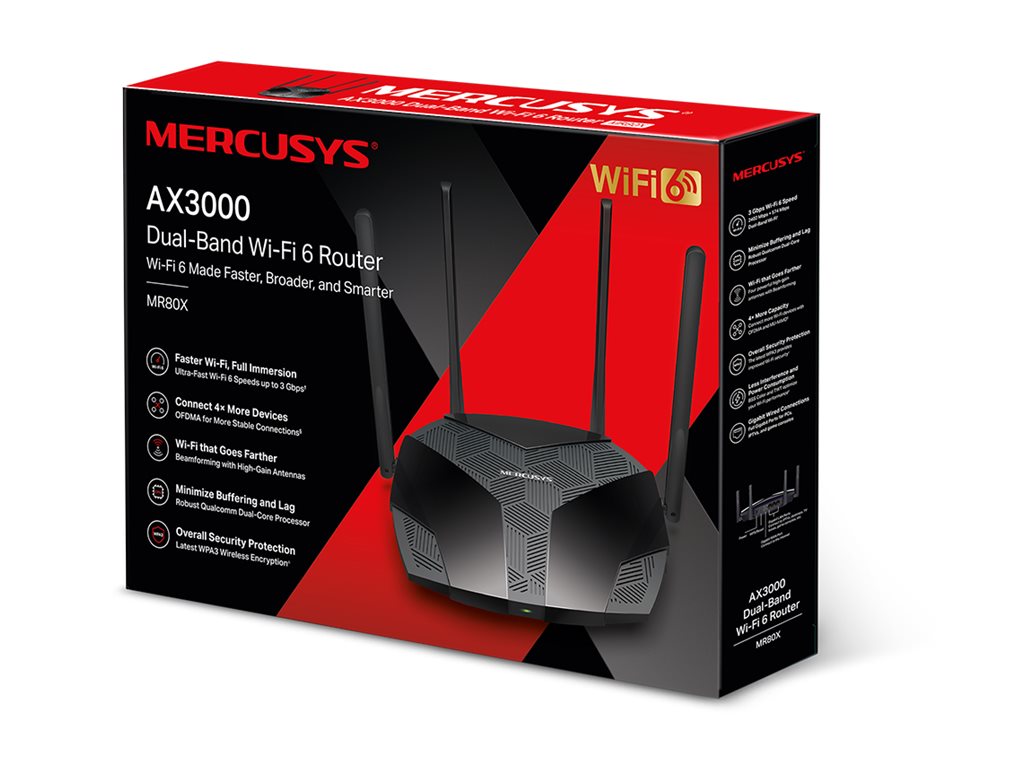 | Produktbeskrivelse | Mercusys MR3000X V3 - trådløs router - Wi-Fi 6 - desktop |