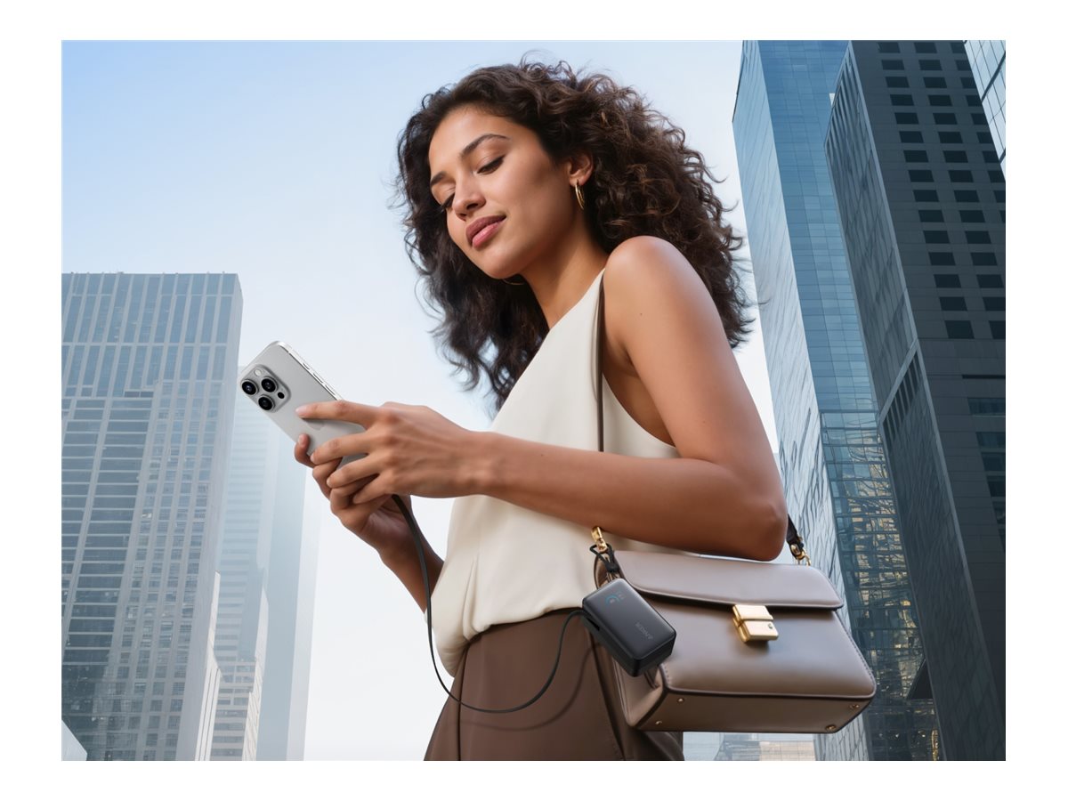 Anker Nano - Powerbank - indbygget USB-C kabel - 10000 mAh - 45 Watt - FC 2.0 - 3 output-stikforbindelser (2 x USB-C, USB) - sort