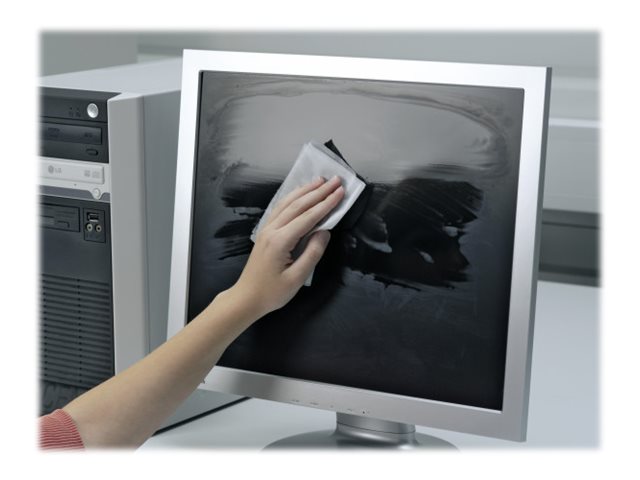 Våd/tørreservietter til rengøring af laptop, glasflader, scannere og kopimaskine. Rengør først med vådservietten og derefter tørres af med tørreservietten. Antibakteriel (indeholder BACT-O-CLEAN).