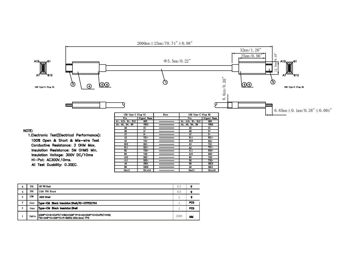 | Stikforbindelse (anden ende) | 24 pin USB-C - han |