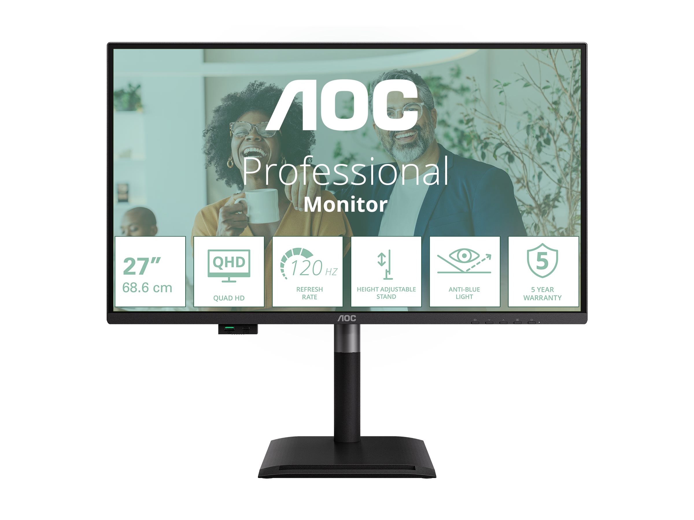 Q27P4CV tilbyder en 27" QHD-skærm med 120Hz opdateringshastighed og hardware Anti-Blå Lys for klart og behageligt billede. Med en integreret dockingløsning med 96W Power Delivery, et pop-ud USB-hub og alsidig tilslutning, er det den perfekte skærm til at strømline din arbejdsstation og øge effektiviteten.