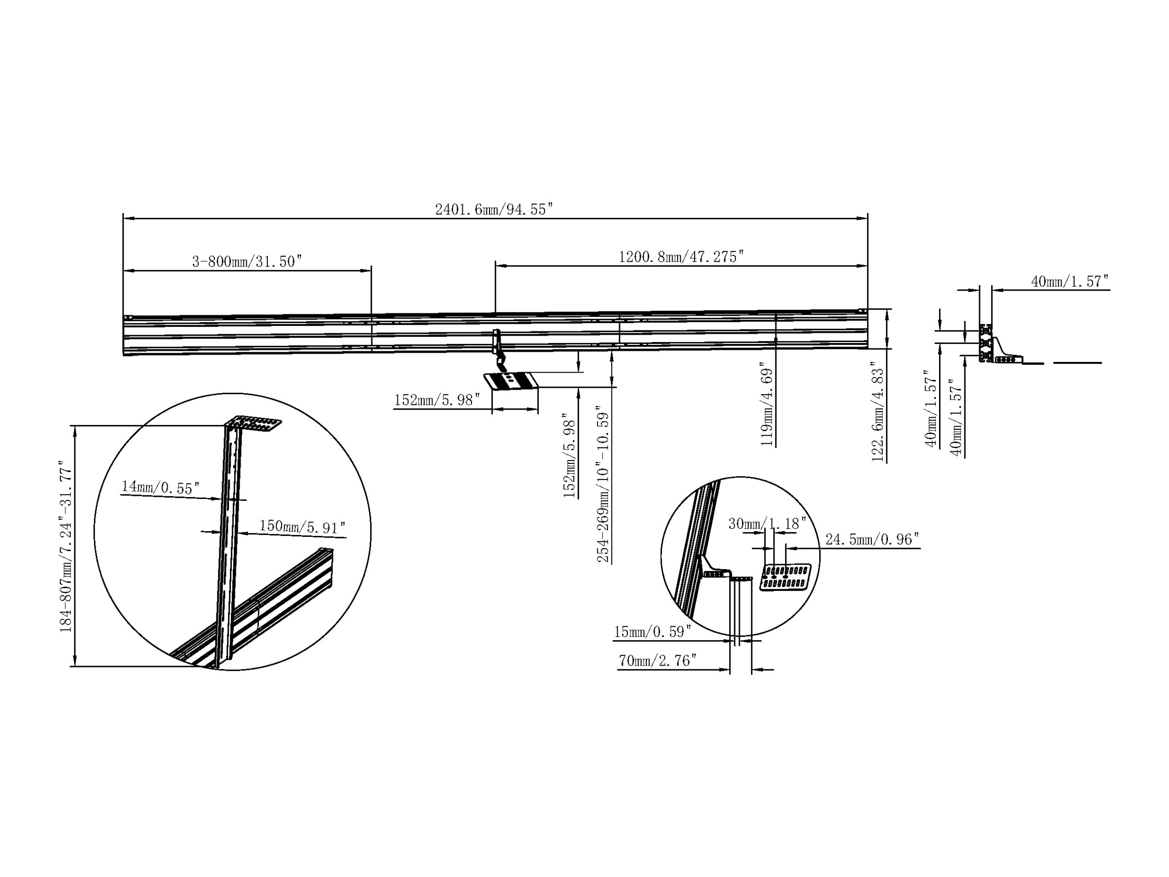 Dette monteringssæt er fremstillet af stål og aluminium af høj kvalitet, der kan bære en maksimal belastning på 120 kg, hvilket sikrer pålidelig ydeevne over tid.
