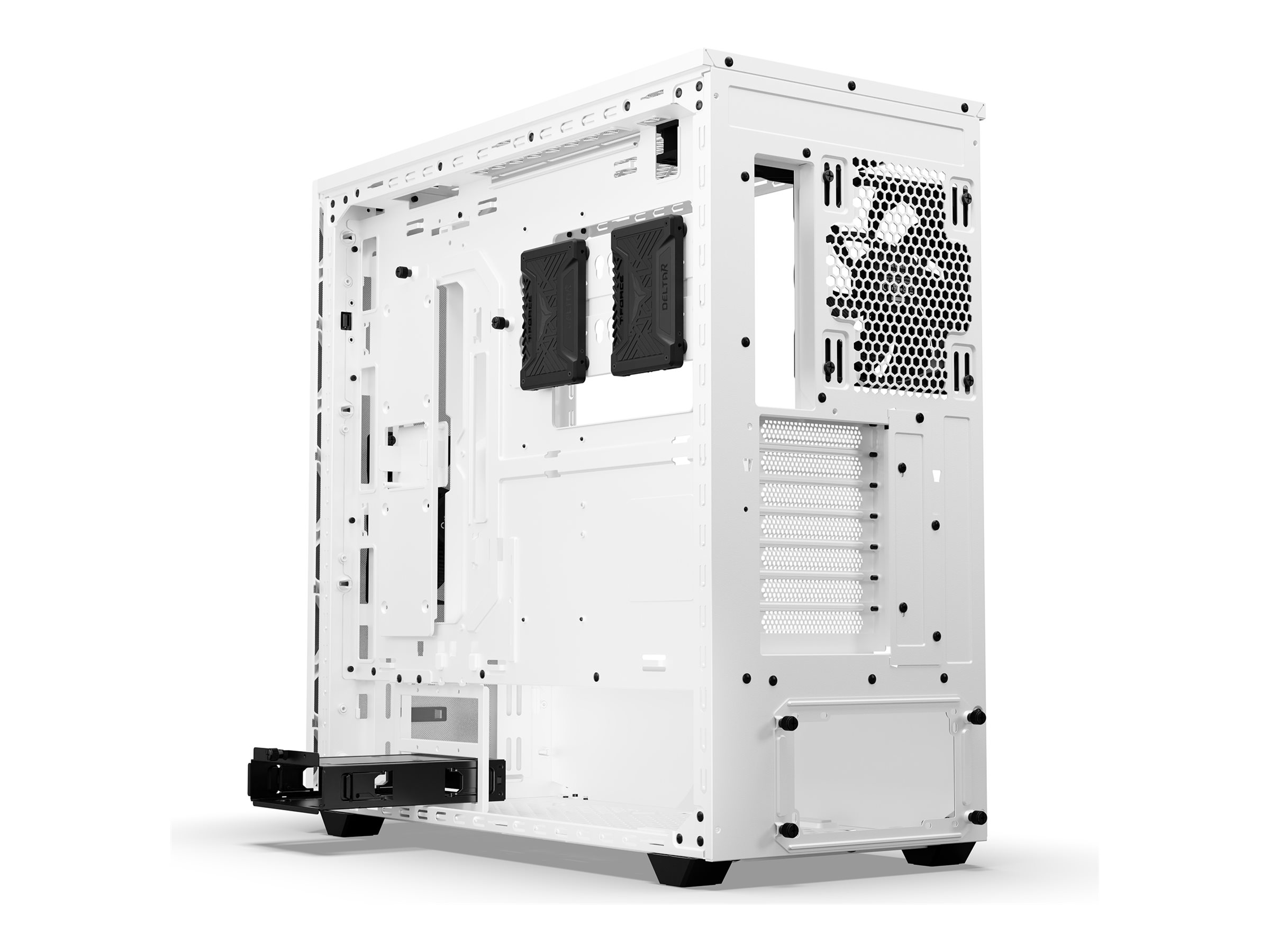 Udstyret med Pure Wings 3-blæsere og understøttelse af op til 420 mm radiatorer på forsiden, toppen og bagsiden sikrer dette systemkabinet optimal luftstrøm og køleeffektivitet til højtydende komponenter.