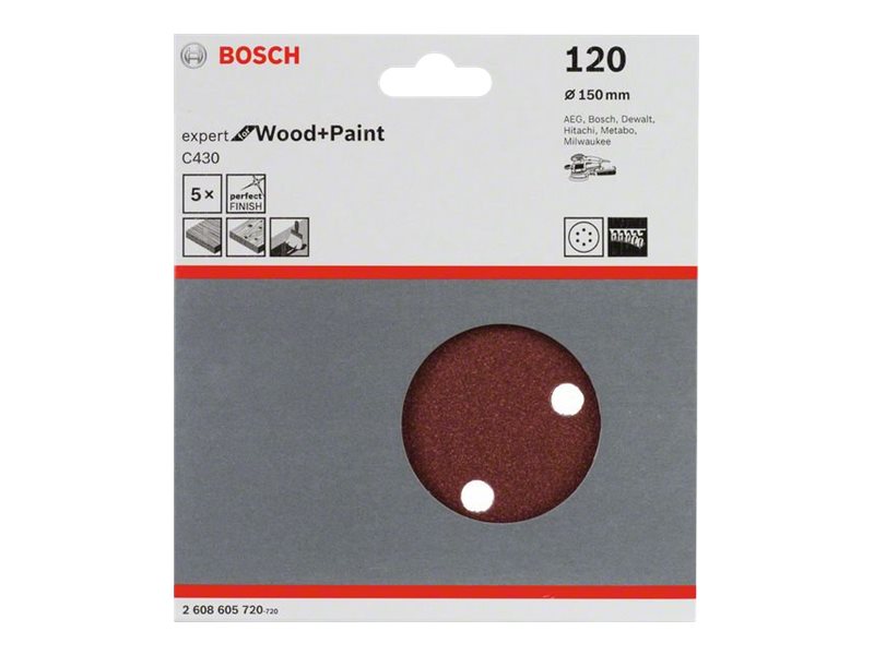 | Produktbeskrivelse | Bosch Expert for Wood and Paint C430 - sandpapirsark - for træ, hardwood, maling, fineret træ, lak, fyld - 5 stykker |