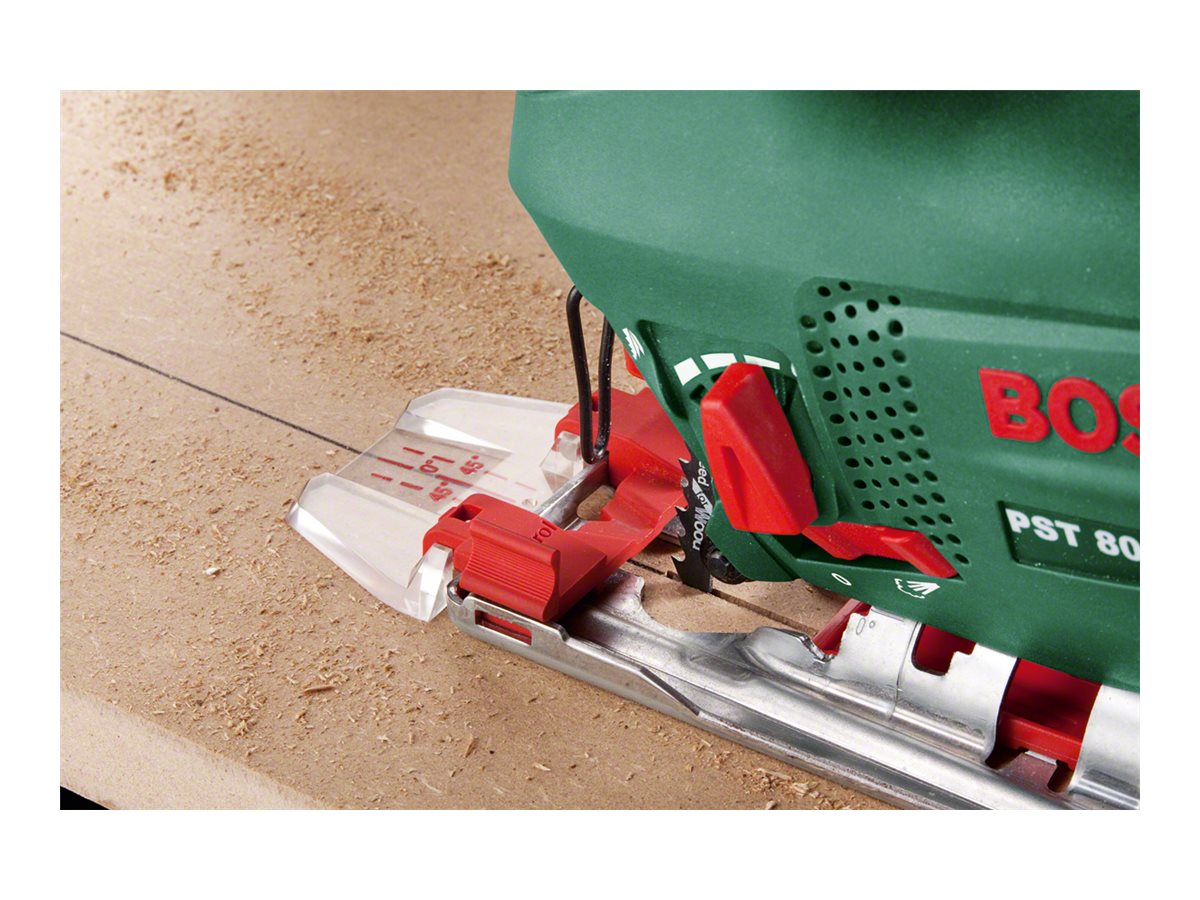 Det bliver ikke nemmere for dig: kompakt størrelse, lav vægt og fremragende brugervenlighed sikrer en kontrolleret og optimal brugerkomfort. Præcision i ethvert materiale takket være den gennemprøvede Bosch Electronic: styring af omdrejningstallet via trykkontakten af hensyn til nem savestart og materialetilpasset arbejde. Minimale vibrationer samt sikkert og komfortabelt arbejde med Bosch "Low Vibration" og lineær masseudligning samt ergonomisk Softgrip. Kraftig 500-W-motor og 70 mm snitdybde i træ - på den måde får du hurtigt vanskelige opgaver fra hånden. Bosch SDS sikrer lynhurtigt skift af savklinge med én hånd - uden brug af værktøj. Aktiverbar blæseluftfunktion sikrer, at savlinjen altid er fri. Justering af fodpladen til geringssnit i en vinkel på op til 45°.