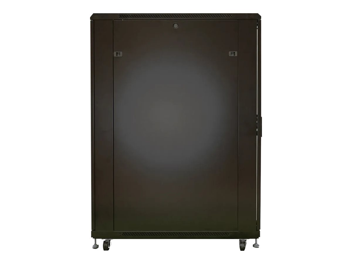Egenskaper Tangentlås, hjul, övre och undre kabelingångspunkter, tassar med justerbar höjd, vändbara luckor, dörr i tempererat glas, borttagbara sidopaneler, bakdörr i stål, glasad framdörr
